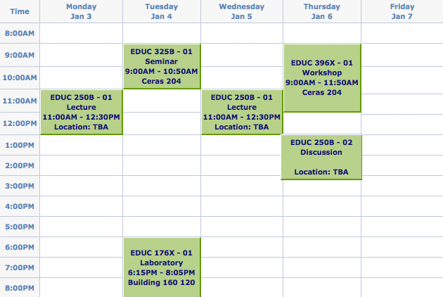 I read the last few pages of Augier & March five times, and the last paragraph, which features one of the most satisfying turns of a phrase I’ve read in grad school yet, a few more than that. I’d give a finger to be able to write a tenth as well as this team. (Rumor has it that March is the poet of the two. Reportedly, he rejects a syllabus for his Stanford business courses, assigning novels, poetry, and Homeric epics instead.) ¶ Berger & Stevenson wasn’t assigned but it’s valuable for anyone trying to carve out a living within education, but outside the classroom. ¶ Delpit explains why some minority parents prefer lecture and drill-oriented skill practice. ¶ Doyle & Carter describes the negotiation of a task between teacher and students better than anybody. This is high drama. You’re watching Ms. Dee start with a high-value academic task that her students negotiate down to nothing. ¶ Erlwanger’s piece was assigned as an example of research that has a) stood up over time and b) affected policy and practice in spite of its small sample size. ¶ The piece by Jackson, et al, isn’t available yet (though the author, herself, was extremely forthcoming) but it is the most forceful take on the task launch I’ve read yet. It comprises, like, 90% of the conceptual framework for my qualifying paper. ¶ Labaree’s proseminar course could basically be described in a single line: “why reform is hard to pull off.” Every time I read his stuff, I found myself thinking, “Oh so this is why Scott McLeod and Will Richardson are so angsty all the time.” His second piece describes the transition from teacher to researcher in a way that had all of us classroom expatriates nodding our heads grimly. ¶ The question no one seemed to be able to answer convincingly was “What is a conceptual framework, exactly, and how does it differ from a literature review?” Lester goes a long way, though.