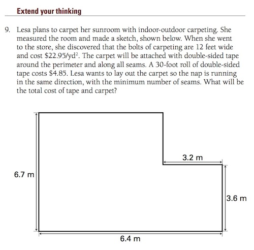 If you have a textbook task you’d like us to consider, you can feel free to e-mail it. Include the name of the textbook it came from. Or, if you have a blog, post your own makeover and send me a link. I’ll feature it in my own weekly installment. I’m at dan@mrmeyer.com.