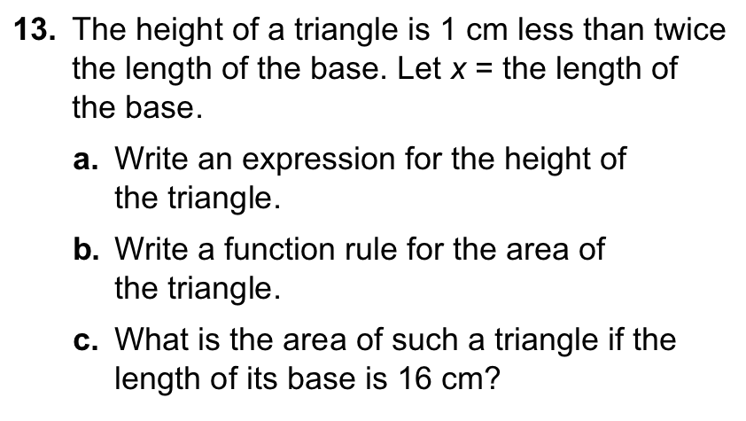 13 height of triangle – what is a “function rule”? It is either a function or a rule.